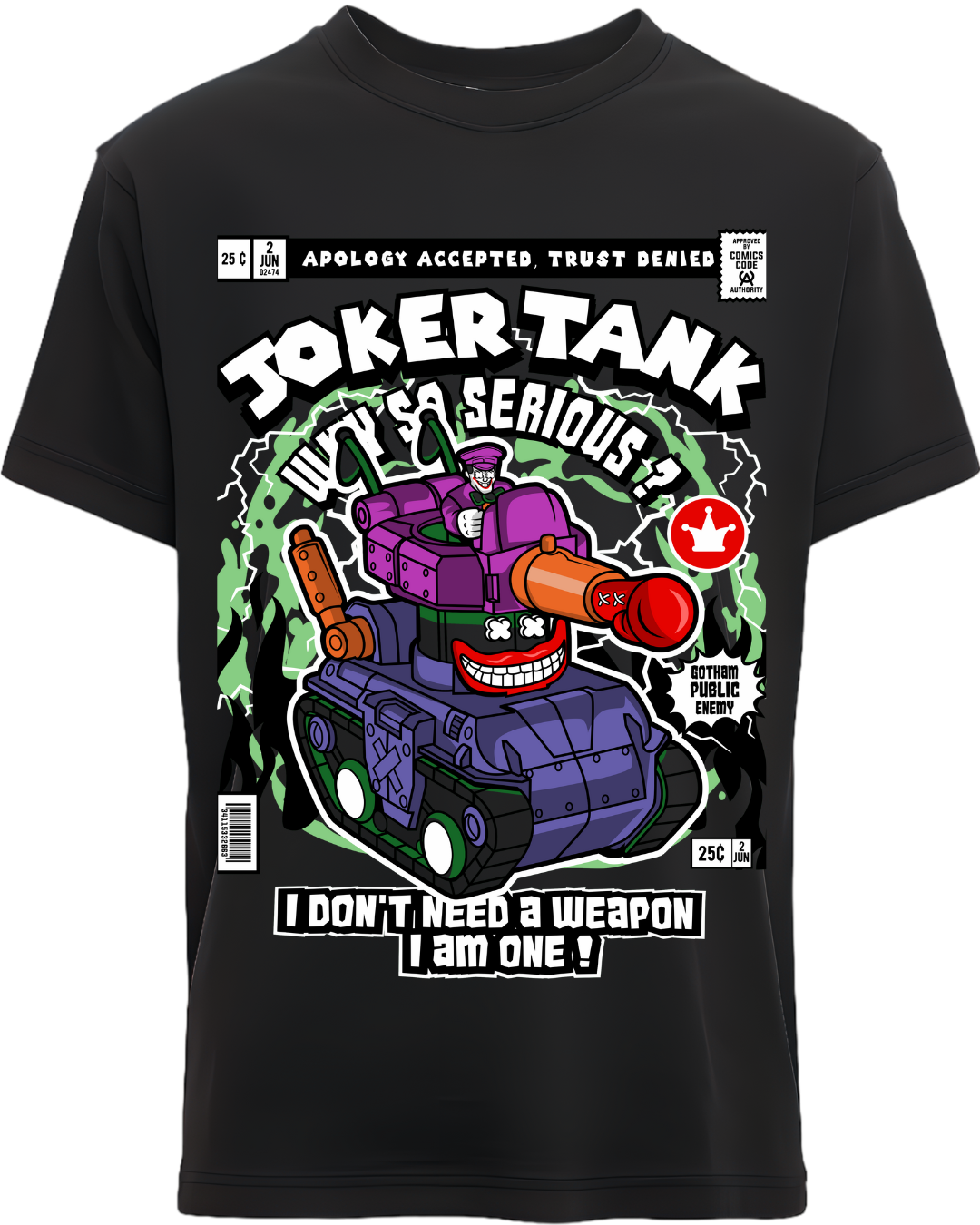 This Joker tankāinspired pop culture movie t-shirt captures the anarchic energy of one of cinemaās most unforgettable villains, reimagined through a bold, rebellious design. Drawing inspiration from gritty city streets, military-grade menace, and the Jokerās trademark love of disorder, this tee blends comic-book madness with cinematic muscle.